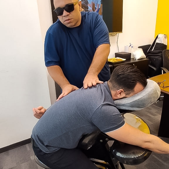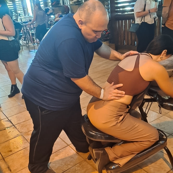 Aplicada em cadeira, essa técnica combina manobras rápidas e eficazes para aliviar dores nas costas, pescoço e ombros, ideal para quem busca bem-estar em pouco tempo.